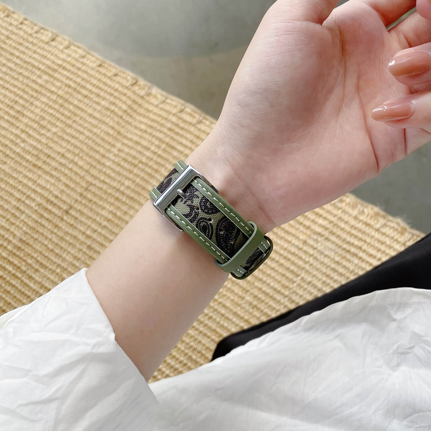 The Arabian Pattern Apple Watch Bands are the perfect combination of canvas and leather, both breathable and comfortable; the beautiful Arabian pattern trim makes it mysterious and elegant.